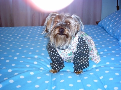 Tu no tienes 3 yorkitos tu tienes 3 angelitos preciosisimos ,como me encanta verlso siempre juntitos y con los vestiditos estan espectaculares de lindos .Muchisimos besitos para cada uno.